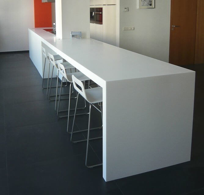 Decamacs werkbladen worden op locatie naadloos verlijmd en gemonteerd. Bij alle werkbladen ongeacht lengte of breedte zijn er na de montage geen verbindingen en naden meer zichtbaar. De Decamacs solid surface spoelbakken worden eveneens naadloos ingebouwd. Kies daarom voor een naadloos werkblad. Kies voor Decamacs!